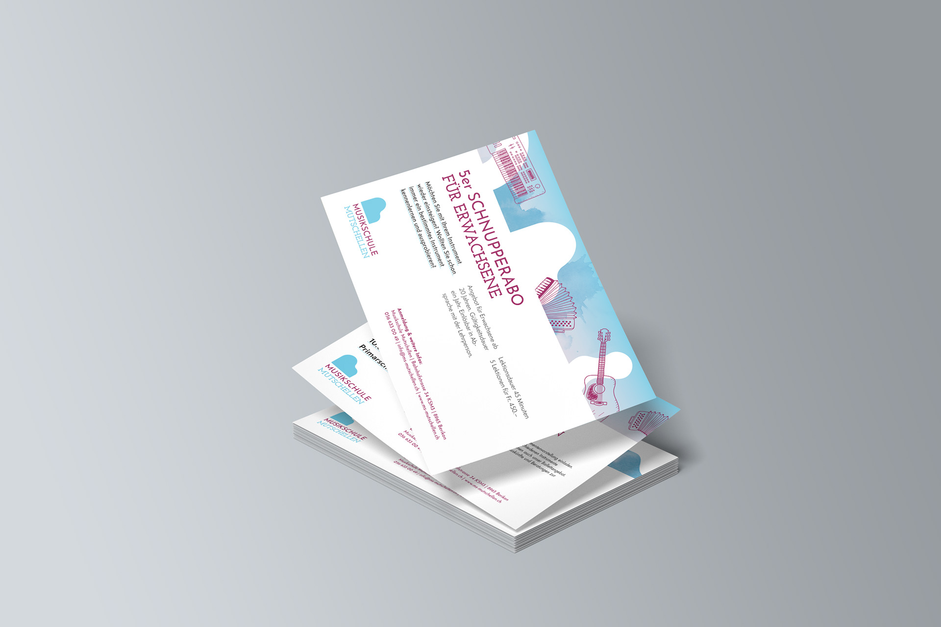 Redesign Logo und Erscheinungsbild, Jahresbericht, Broschüren, Flyer und Inserate für die Musikschule Mutschellen