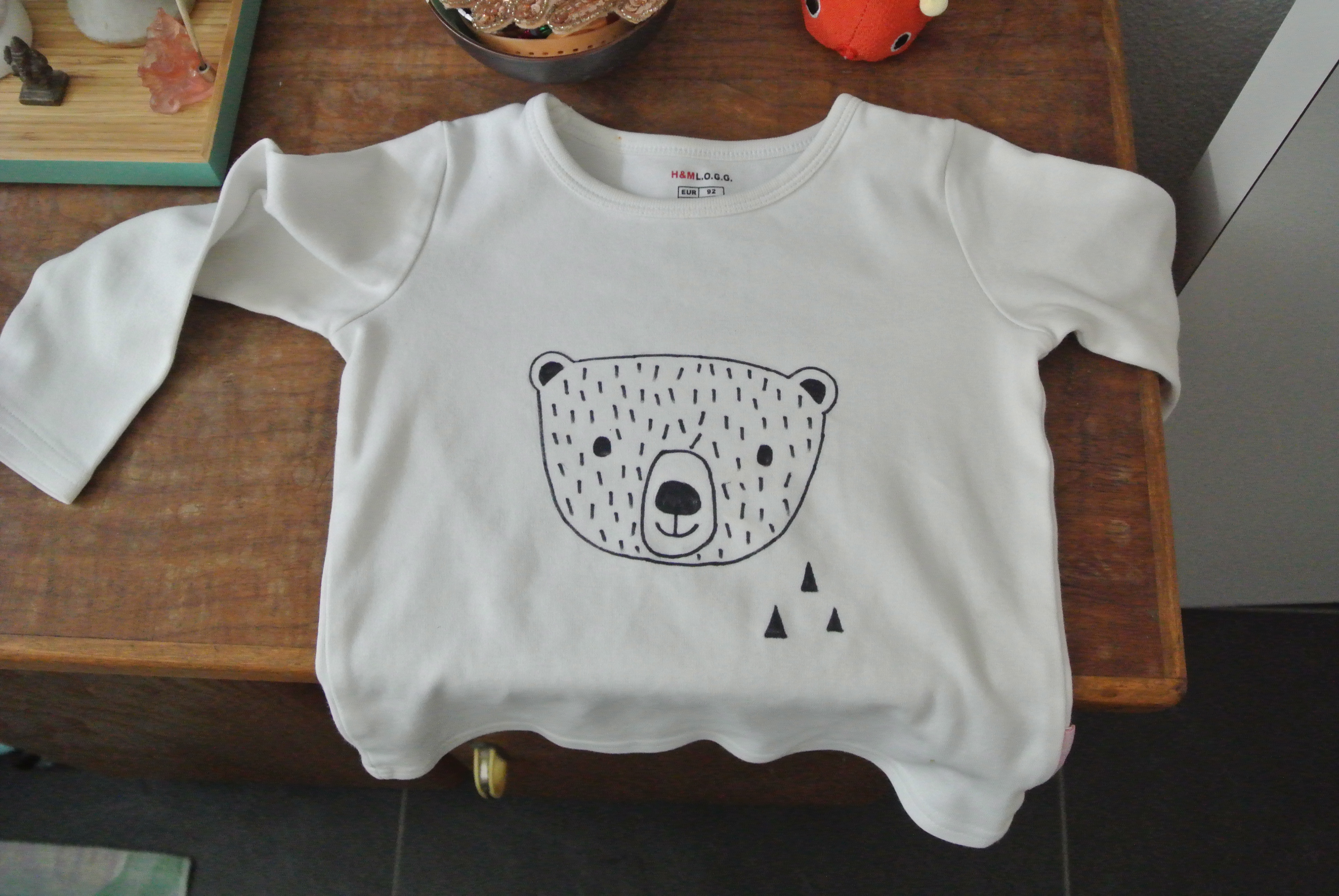 easily done: take a edding waterproof marker and a kids shirt and go crazy :D
