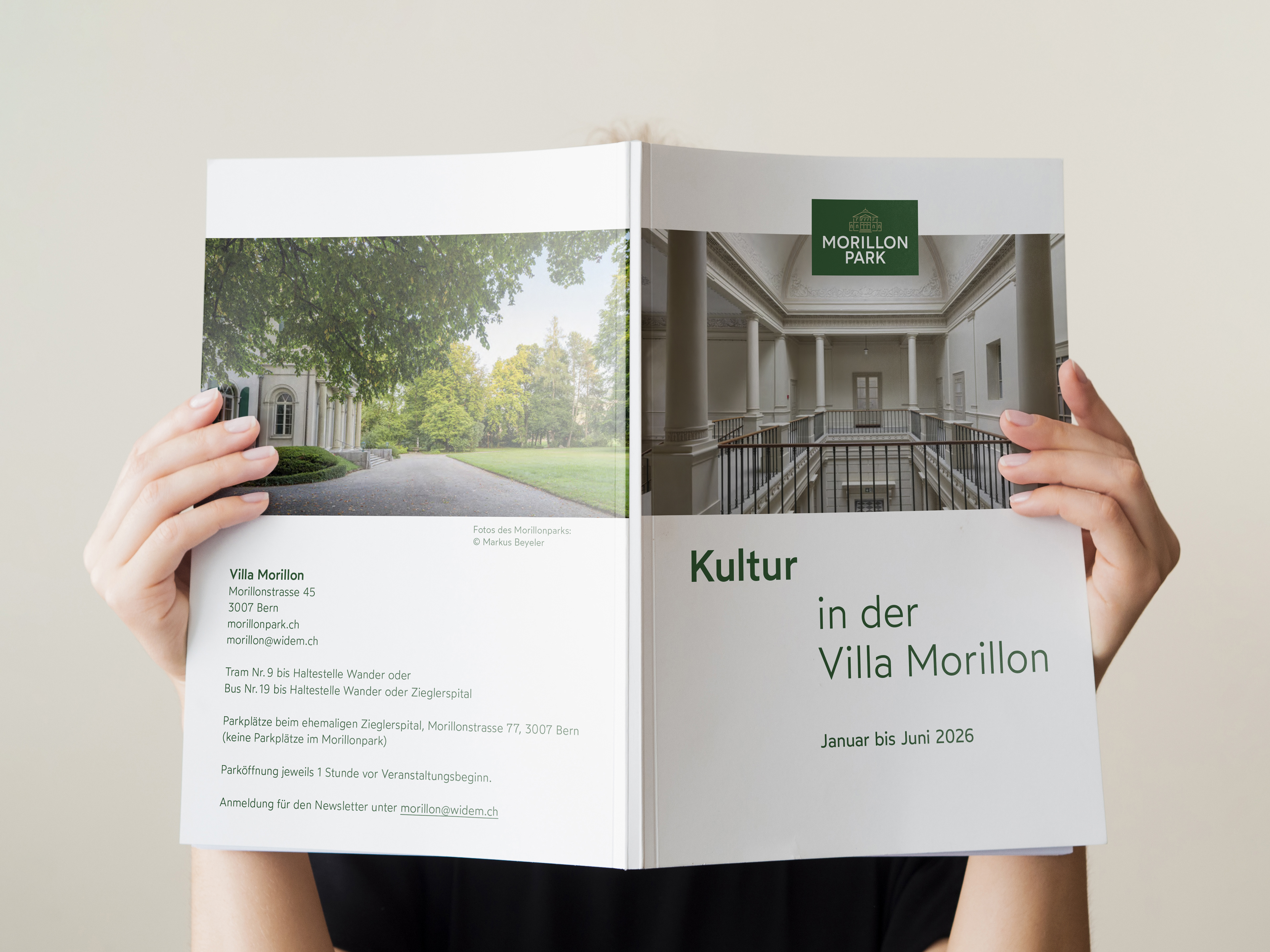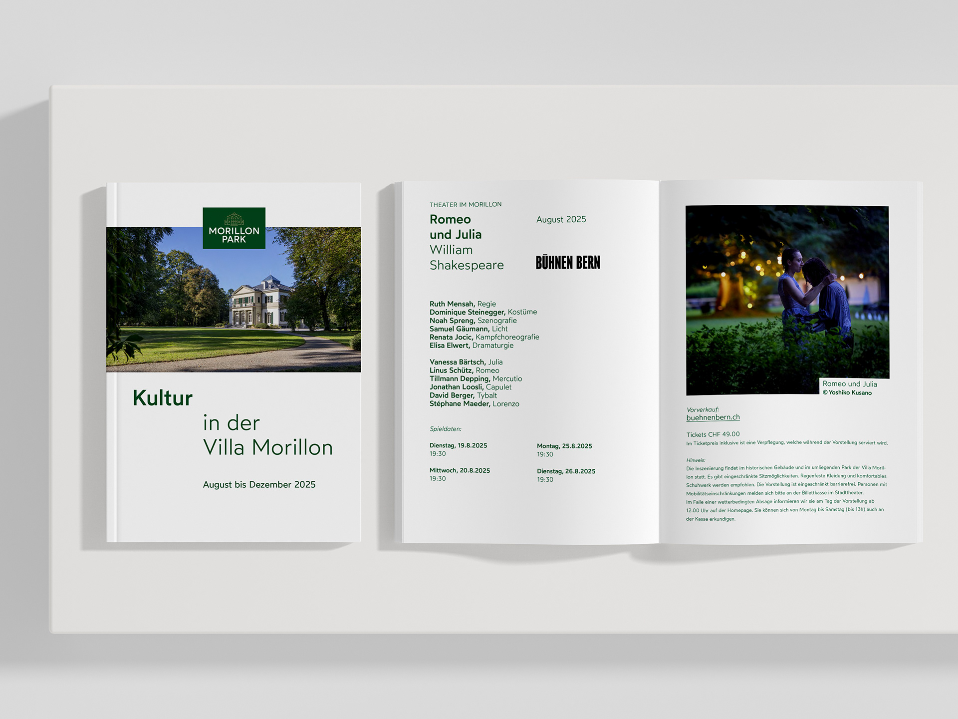 Flyer und Programmhefte für die Kulturveranstaltungen in der Villa Morillon in Bern